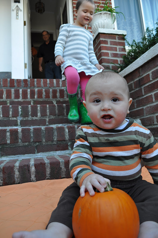 Wonderful fall attire and photos with the pumpkin. The bottom teeth are adorable.